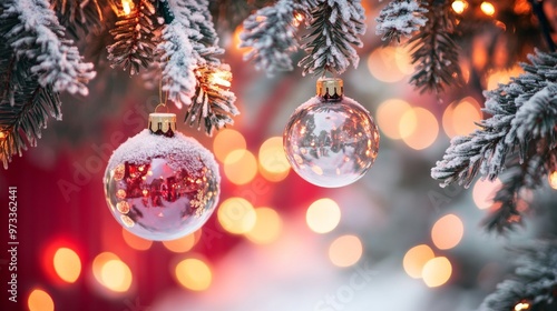 christmas, tree, ornament, holiday, bauble, winter, decoration, festive, glistering, frost, evergreen, branch, light, snow, background, christmas tree, celebration, glowing, bright, vibrant, frosty, new year, sparkle, shiny, christmas lights, hanging, christmas ornament, warm light, blur, new, year, 2024, 2025, christmas, border, banner, poster, card, gold, bokeh, night, street, city, red, ball