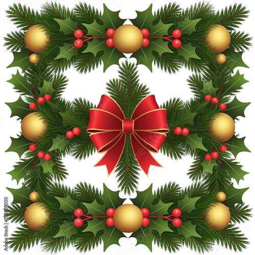 Festive Christmas Wreath with Red Bow and Ornaments"