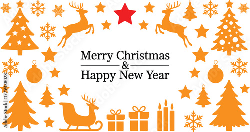 Festive collection of christmas holiday graphic elements including ornaments snowflakes and decorative borders in vibrant colors