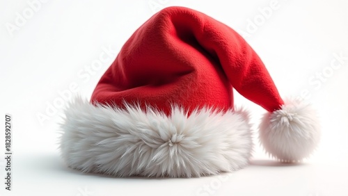 Festive Flair A Classic Red Santa Hat with Plush White Trim on a White Background, Evoking Holiday Cheer and Warmth