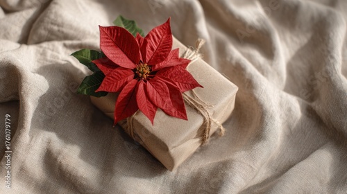 christmas flower, christmas, gift, box, festive, burlap, holiday, rustic, cosy, decoration, elegant, winter, decor, celebration, flower, package, red, present, enclosed, wrapping, leaf, twine, natural, ornamental, seasonal, environmentally friendly, hand-made, craft, texture, new, detail, green, clothes, style, textile, december, cheerful, classic, joy, tradition, culture, foliage, surprise, simple, vibrant, shimmer
