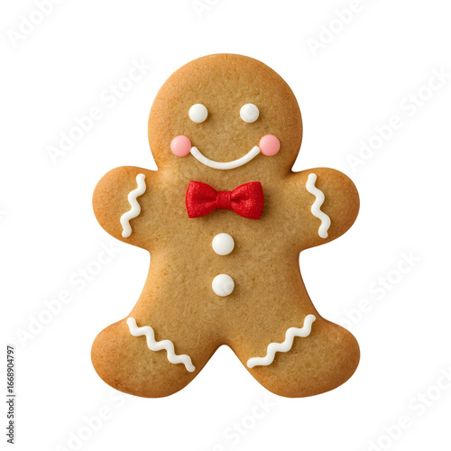 Festive Gingerbread Man: Delightful gingerbread man, adorned with decorative icing, a charming bow tie, and a joyful smile, capturing the essence of holiday cheer.