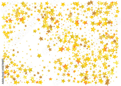 Festive glitter gold star confetti background. Abstract frame confetti texture for holiday, postcard, poster, website, carnivals, birthday and children's parties. Cover confetti mock-up. Wedding card
