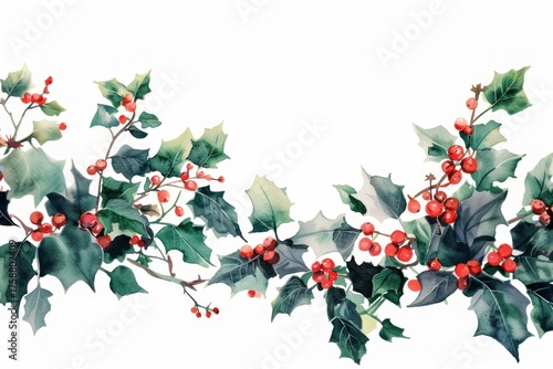 hand-painted, illustration, watercolor, decoration, watercolor, botanical, christmas, seasonal, blossom, festive, flower, foliage, graphic, holiday, isolate, produce, border, garden, leaf, nature, winter, berry, fruit, green, holly, paper, plant, art, red