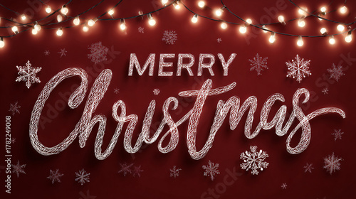 christmas, holiday, celebration, greeting, festive, decoration, snowflake, light, string, red, background, typography, lettering, design, winter, joy, seasonal, cheer, warm, card, art, message, event, bright, wish, happiness, tradition, love, family, culture, warmth, sparkle, banner, signs, spirit, visual, merry, friends, togetherness
