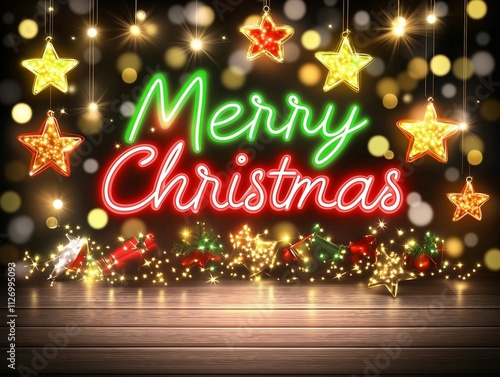 Festive Merry Christmas with Glowing Lights and Decorations