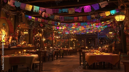 eatery, mexican, interior, night, festive, decor, table, dinner, celebration, party, food, candlelight, warm, bright, colourful, holiday, latin, culture, tradition, atmosphere, cosy, romantic, happy, joyful, gathering, family, friends, event, lighting, design, background, setting, scene, ambience, vintage, authentic, travel, vacation, mexico, south america, latin america