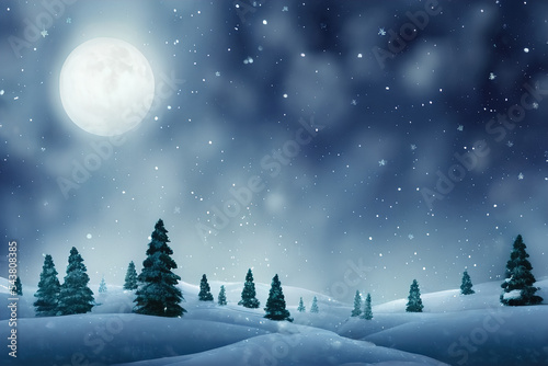 festive night landscape with moon and fir trees