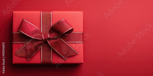 gift, red, box, bow, ribbon, present, holiday, celebration, surprise, package, festive, wrapped, occasion, giving, event, decorative, design, texture, topview, arrangement, background, scarlet, crimson, burgundy, merchandise, retail, sale, promotion, anniversary, birthday, christmas, valentine, love, elegance, minimalism, simple, bright, studio shot, copy space, horizontal, nobody, object, classic, traditional, stylish, closeup, hand-made