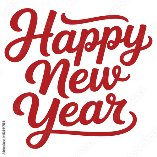 happy new year, new year, celebration, holiday, festive, greeting, text, typography, script, calligraphy, red, bold, elegant, decorative, flourish, handwritten, art, design, illustration, graphic, background, isolated, white, new year's eve, party, wishes, season, joy, excitement, anticipation, celebratory, modern, classic, stylish, clean, simple, minimalist, vector, transparent, message, poster, card, banner, digital, print, event