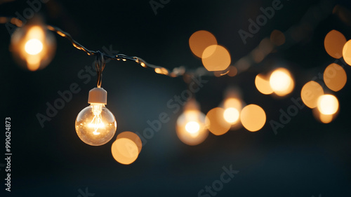 Festive string lights illuminate a cozy outdoor gathering during a warm summer evening