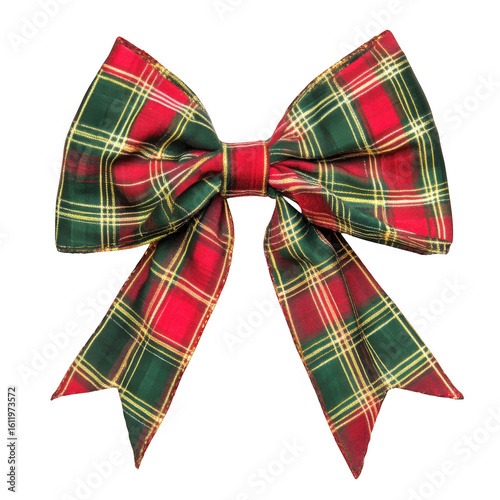 Festive tartan bow isolated on transparent background
