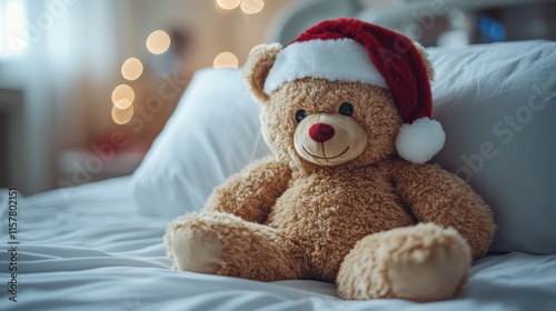 Festive teddy bear cozy bedroom holiday decor warm atmosphere close-up nostalgia
