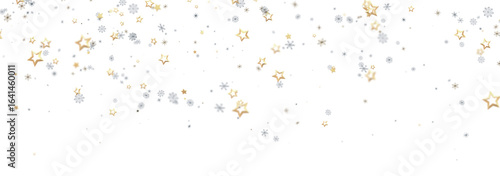 Festive winter background with gold and silver stars and snowflakes. Perfect for holidays.