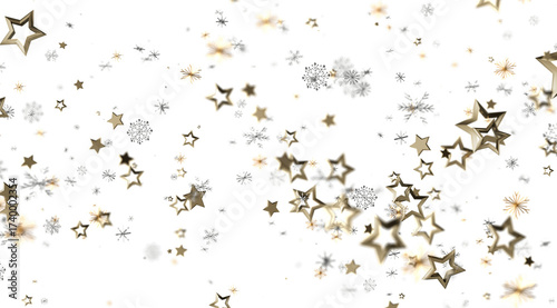 Festive winter background with gold stars and snowflakes. Perfect for holidays and celebrations.