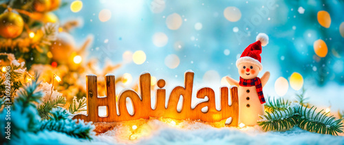 festive winter holiday scene with snowman