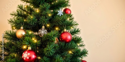 christmas, holiday, tree, ornament, decorated, green, festive, red ball, snowflake, lichterkette, indoor, celebration, winter, seasonal, pine tree, traditional, home decor, cosy, bright, shiny, sparkling, family, joy, cheerful, new year, december, cultural, happy holiday, decoration