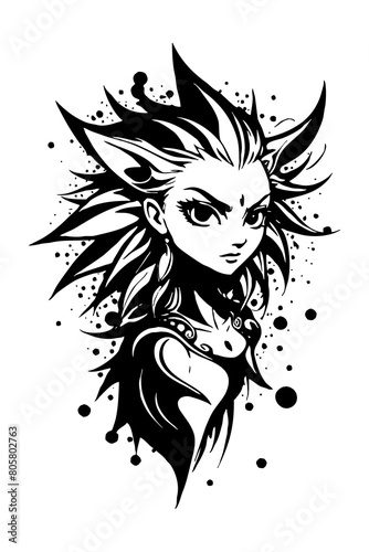 Fictional female character. Black and white pattern. For use on tattoos, posters, textiles and T-shirt prints. Generated by Ai