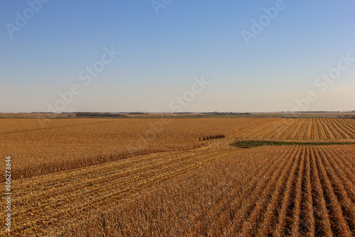 corn, field, harvest, agriculture, row, hill, minnesota, blue, sky, autumn, fall, crop, ripe