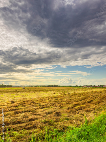 field, grass, cloudy, sky, background, overcast, dry, nature, brown, landscape, agriculture, blue, rural, summer, farming, green, countryside, land, meadow, plant, season, environment, country, cloud, yellow, spring, beautiful, scene, horizon
