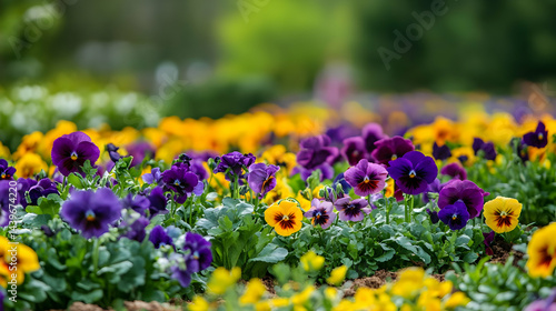 Field of Pansies: Vibrant Purple and Yellow Flowers