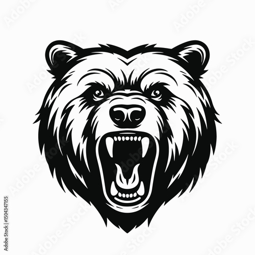 bear, head, vector, illustration, animal, predator, grizzly, mascot, design, mammal, wildlife, art, drawing, graphic, clip art, isolated, nature, carnivore, wild, face, portrait, beast, roar, mouth, teeth, furious, aggressive, danger, symbol, strength, power, black, white, outline, icon, template, element, tattoo, vintage, retro, style, angry, ferocious, menacing, strong, bold, fierce, scarey