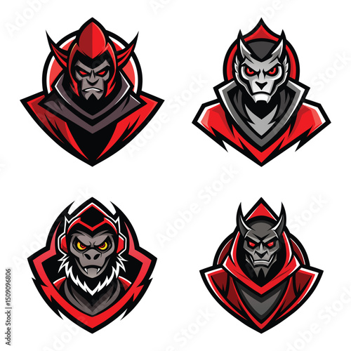 Fierce Dark Fantasy Mascot Logos – Demonic and Beast-Inspired Avatars White background