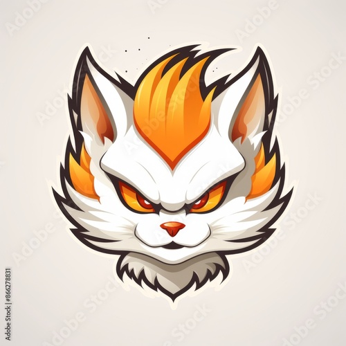 Fierce White Cat with Orange Flame Fur, Gaming Mascot Logo