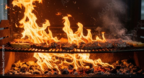 Fiery Barbecue Grilling Delicious Steaks Outdoors
