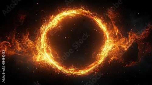 Fiery Circle of Flames Abstract Digital Art on Black Background with Dynamic Swirling Heat and Sparks