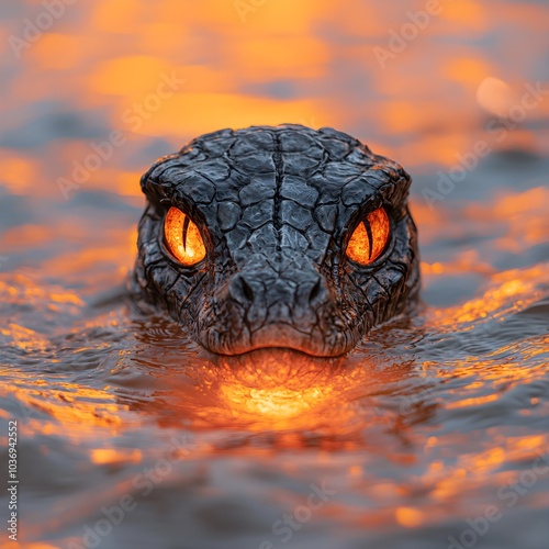 Fiery dragon emerging from the water at sunset