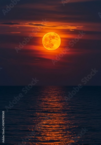 moon, ocean, sea, water, sunset, sunrise, night, sky, cloud, red, orange, fiery, calm, peaceful, serene, tranquil, mystical, magical, mysterious, romantic, dramatic, beautiful, nature, landscape, astronomy, celestial, cosmic, dark, light, glow, vibrant, colours, horizon, evening, twilight, atmosphere, mood, ambience, serenity, calmness, stillness, awe, wonder, majesty, power