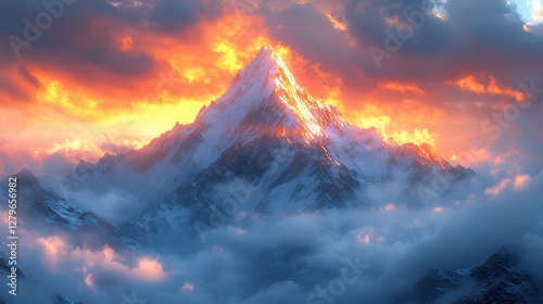 Fiery Mountain Peak Illuminated by Sunrise