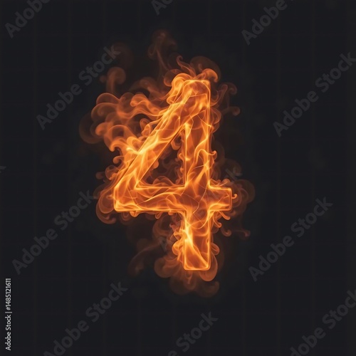 Fiery Number 4 in Flames on Dark Background – Burning Typography Design