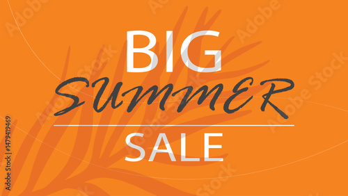 Fiery red horizontal template of big summer sale. Bright seasonal banner with text. Background with shadow of palm branches for leaflet, brochure, advertisement, announcement. Vector graphics
