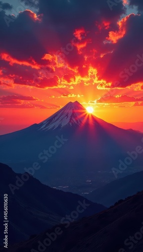 Fiery sunset paints Cerro's silhouette, vibrant sky , photo, purple