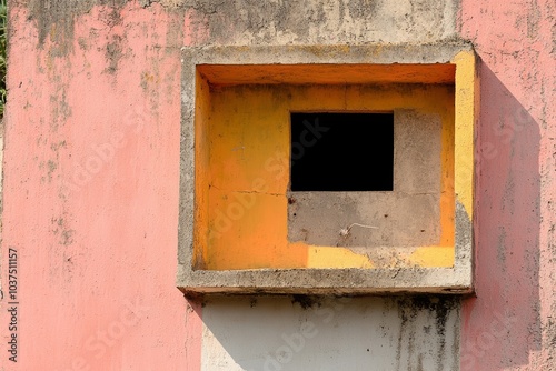 色鮮やかな壁の小窓とその周辺のテクスチャー