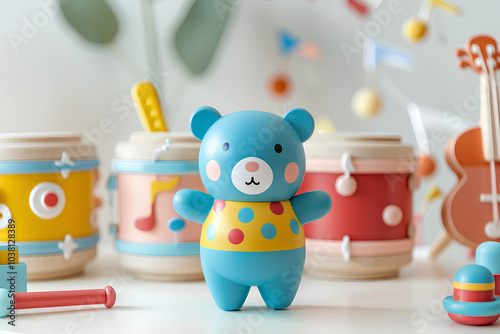 bear, woodwork, concert, fun, colourful, gentle, sweet, animal, healing, handcraft, instrument, strap, music, fellow, concert, smile, fantasy, toddler, tenderness, natural, note, grain, friends, happy, piano, drum, peace