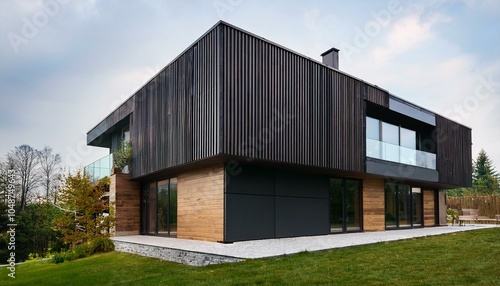 黒と木材の壁のモダンな家