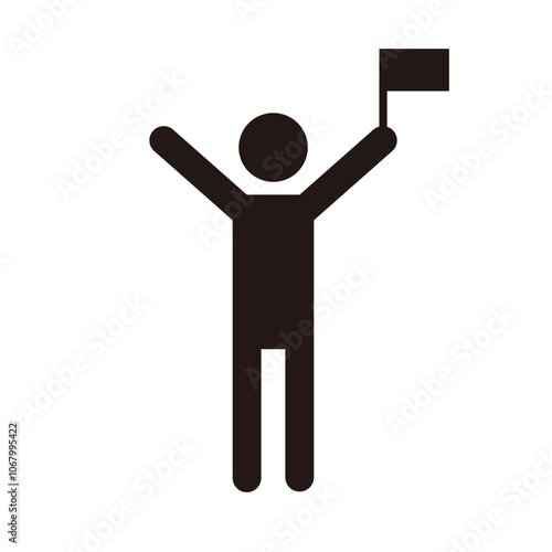 person, people, pictogram, silhouette, illustration, icon, black, banzai, hooray, signs, vector, symbol, signs, shape, symbol, flag, flag, flag, shake, possess, achievement, success, signs, vector, mark, man, character, people