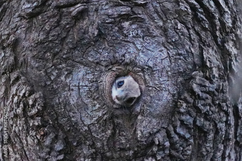 巣穴から顔を出したエゾモモンガ