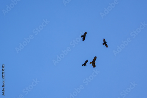 black kite, bird, fly, flying, blue skies, kite, kite, crow, harassment, attack, sky, firmament, blue, black, fly, bird, nature, animal, wild, sunny, open air, wildlife, landscape, creature, copy space, biology, japan, flock, bird of prey, wing, flying