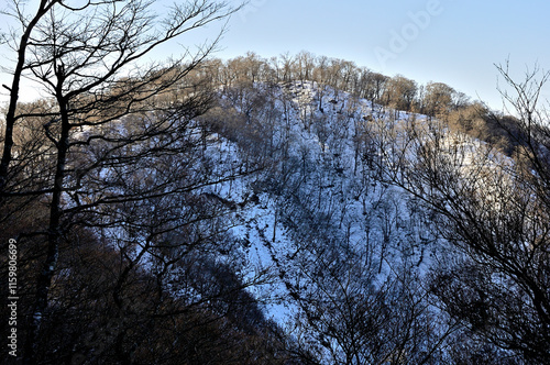 丹沢の檜洞丸より 朝日の石棚山稜 テシロノ頭