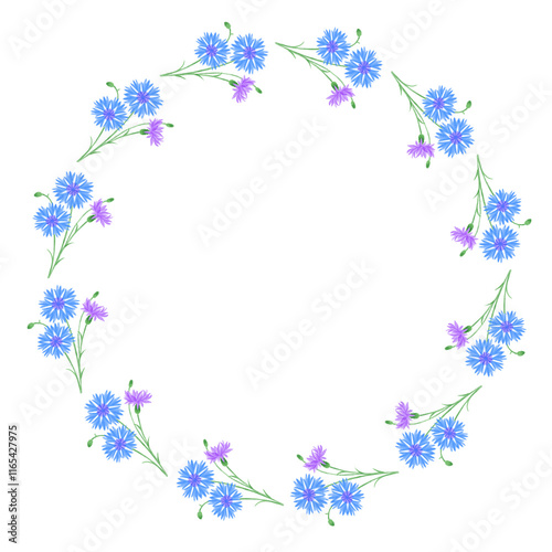 色鉛筆タッチの矢車菊のリースのイラストレーション