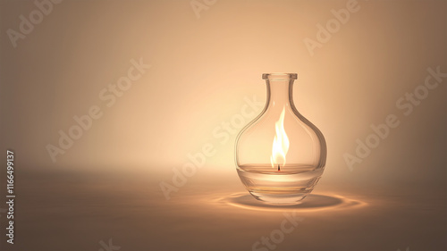 透明なガラス瓶内に灯る小さな炎
