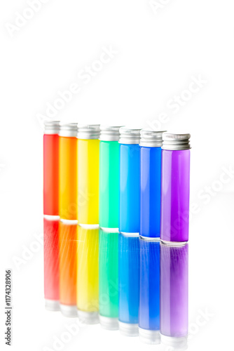 rainbow, rainbow, test, tube, laboratory, glasses, chemistry, science, chemical, liquid, isolated, experiment, study, pigmentation, medicine, test tube, equipment, green, blue, analysis, red, white, medicine, scientific, object, bottle