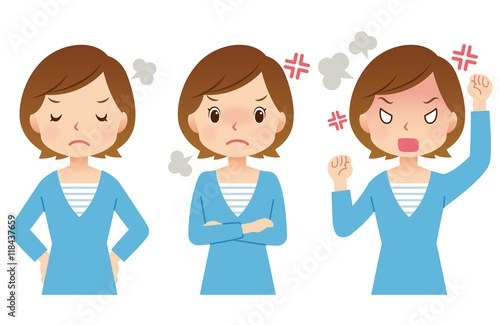 woman, homemaker, expression, set, anger, anger, outrage, resent, cross, hot, annoyance, waist up, young, people, japanese, illustration, sweet, plural, mother, mother, mother, pose, emotion, protestation, gesture, variation, child rearing, upbringing, asian, 30s, resent, hysteria, umbrage, feeling, rage, family, family, blue