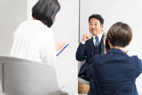 インタビューを受けるミドル男性 ビジネスイメージ