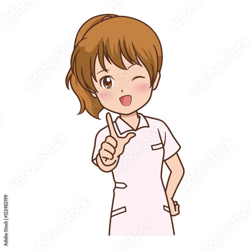 woman, woman, smile, light, wink, front, success, resolution, understanding, point, point, nurse, medical care, nurse, welfare, hospital, clinic, nurse, youth, illustration, people, person, sweet, asian, japanese, white background, waist up, cartoon, animation, vector