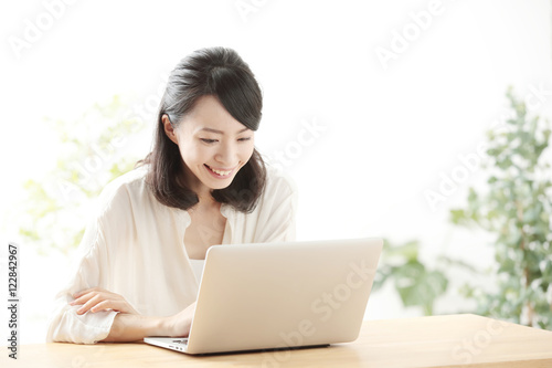 personal computer, notebook, woman, girl, homemaker, investment, sideline, soho, young, table, table, life, lifestyle, white, fx, sweet, pretty, pretty, clean, japanese, asian, people, net, cyberspace, shopping, examine, spend, search, app, future, green, plant, indoor, smile, shopping, fun, joyful